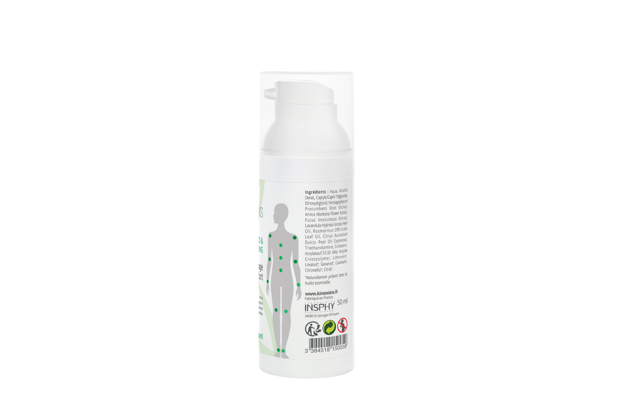 Composición: extractos vegetales de Árnica Montana, Harpagophytum y algas marinas, aceites esenciales de Romero, lavandín y naranja.